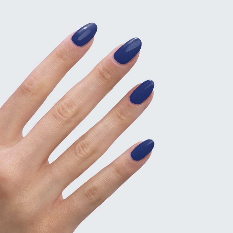 True indigo. Dark. 1 coat sheer, 2+ coats opaque. Cool undertone.